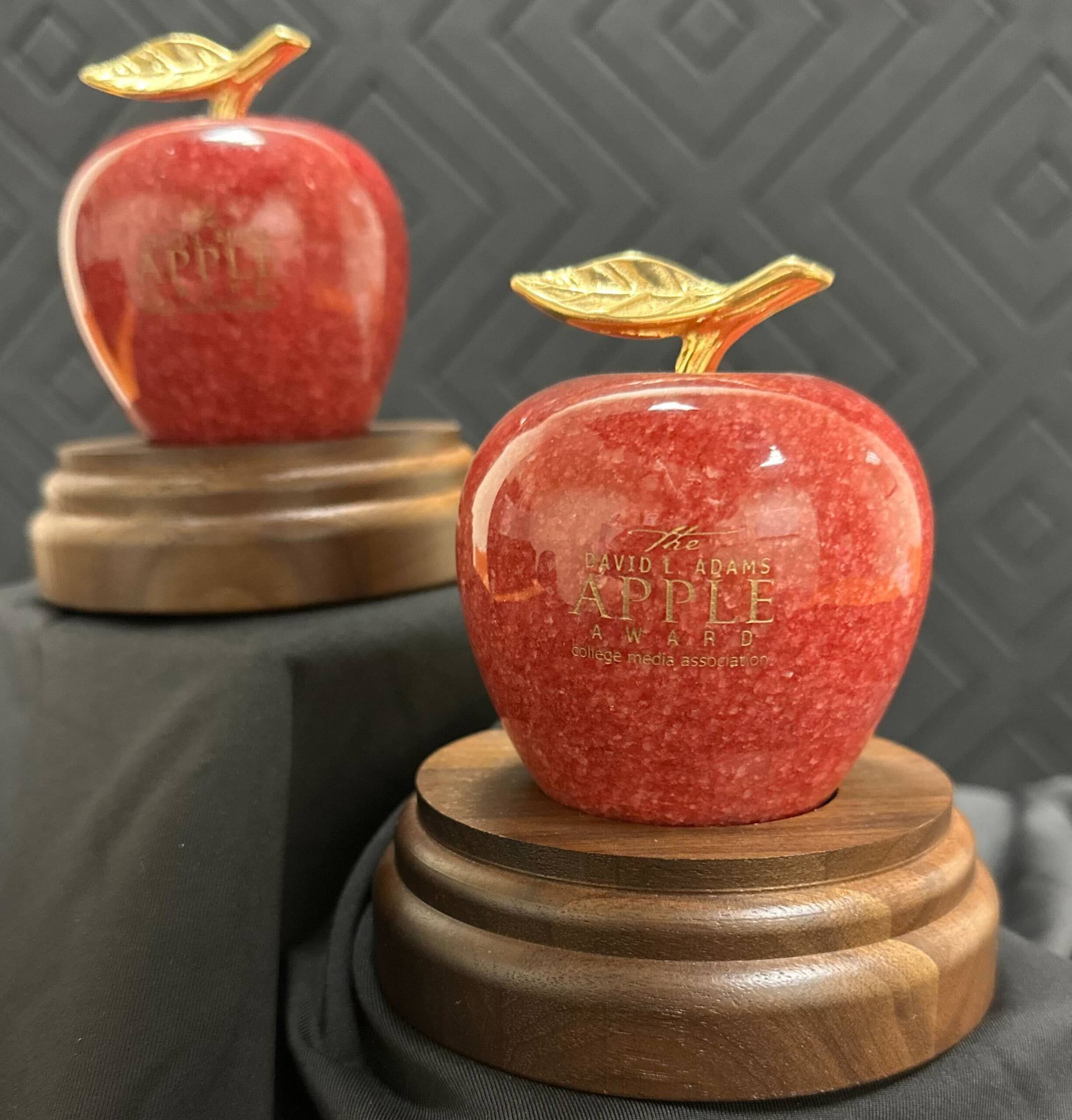 The David L. Adams Apple Awards recognize outstanding achievements as the “Best of Show” for the NYC convention. Named in honor of David L. Adams, a dedicated and influential figure in the College Media Association and a longtime adviser at Indiana University, the awards commemorate his enduring legacy following his passing in 2007.